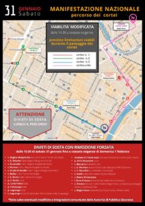 Lungo il percorso saranno istituiti divieti di sosta con rimozione forzata dei veicoli dalle ore 10 sabato 31 gennaio fino a cessate esigenze.