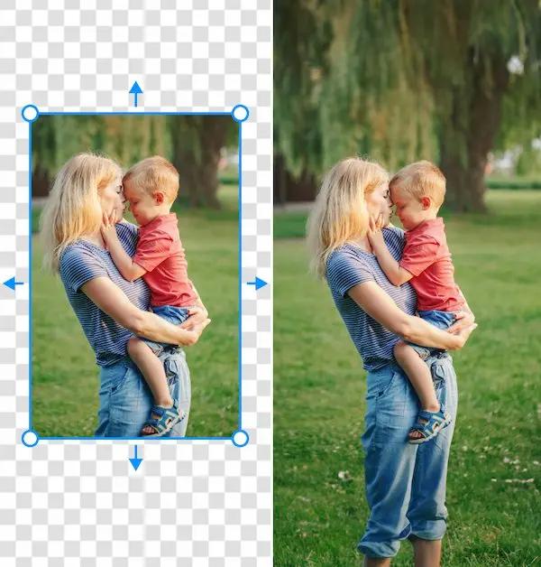- Offre controllo completo sull’espansione: è possibile ampliare l’immagine in qualsiasi direzione.