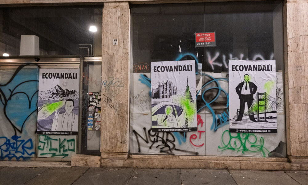 È la nuova provocazione con cui Extinction Rebellion riporta l’attenzione “sui veri ecovandali, su un Governo che investe miliardi in opere ecocide, come i 14 per il ponte sullo Stretto o i 7 per le Olimpiadi di Milano – Cortina, abbandonando i territori e i loro abitanti alla furia di un clima impazzito. E che da tre anni sfrutta fatti di cronaca per diffondere un senso di insicurezza, aumentare i reati e ridurre gli spazi democratici per esprimere dissenso, criminalizzando chiunque protesti” riporta il movimento.
