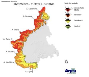 Il livello di pericolo valanghe è 4-FORTE su una scala di 5: valli Germanasca, Pellice, Chisone, Susa, Lanzo, Orco, Soana, Pennine di confine e Lepontine Nord.