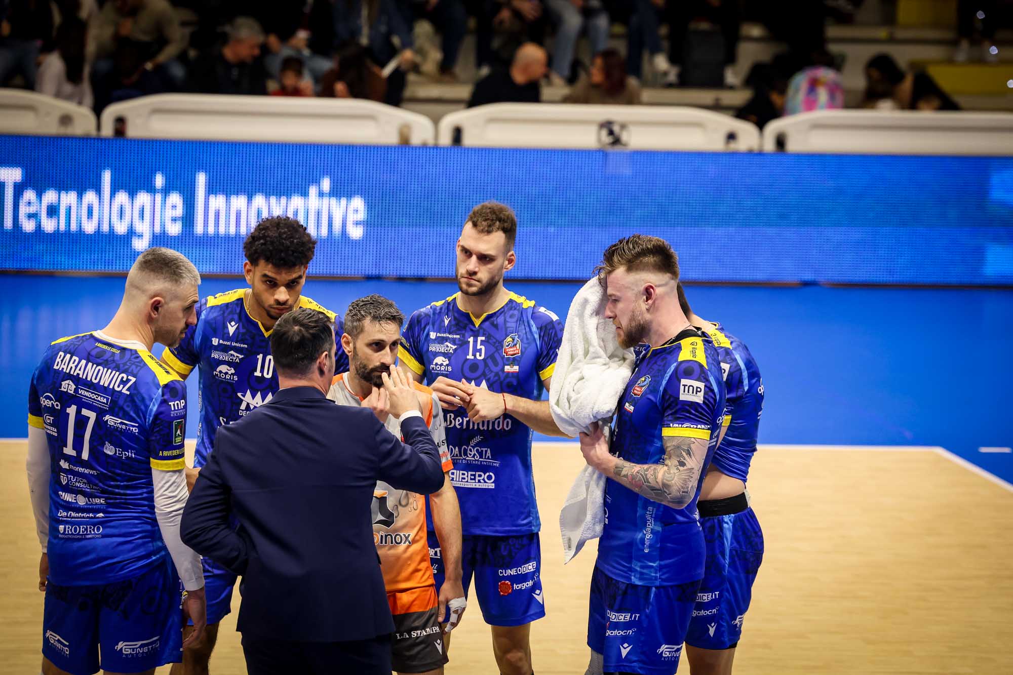 Lo starting six di Cuneo: Baranowicz palleggio, Feral opposto, Codarin e Stefanović centro, Strehlaure e Zaytsev schiacciatori; Cavaccini (L).