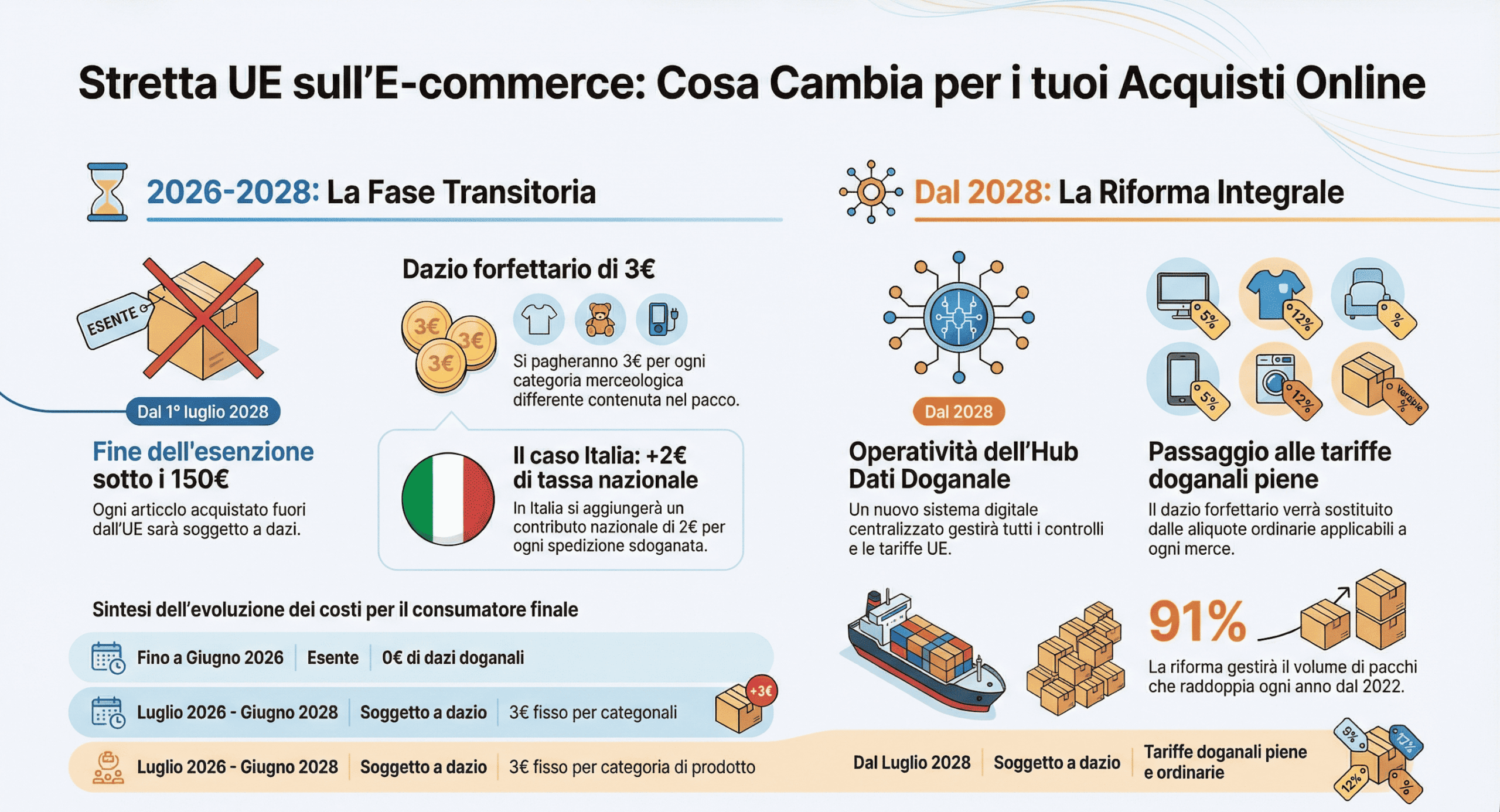 PIEMONTE – Ammettiamolo: tutti abbiamo fatto almeno un acquisto su un e-commerce low cost. Ma dal 1° luglio 2026 le spese per gli acquisti da piattaforme extra UE potrebbero aumentare.