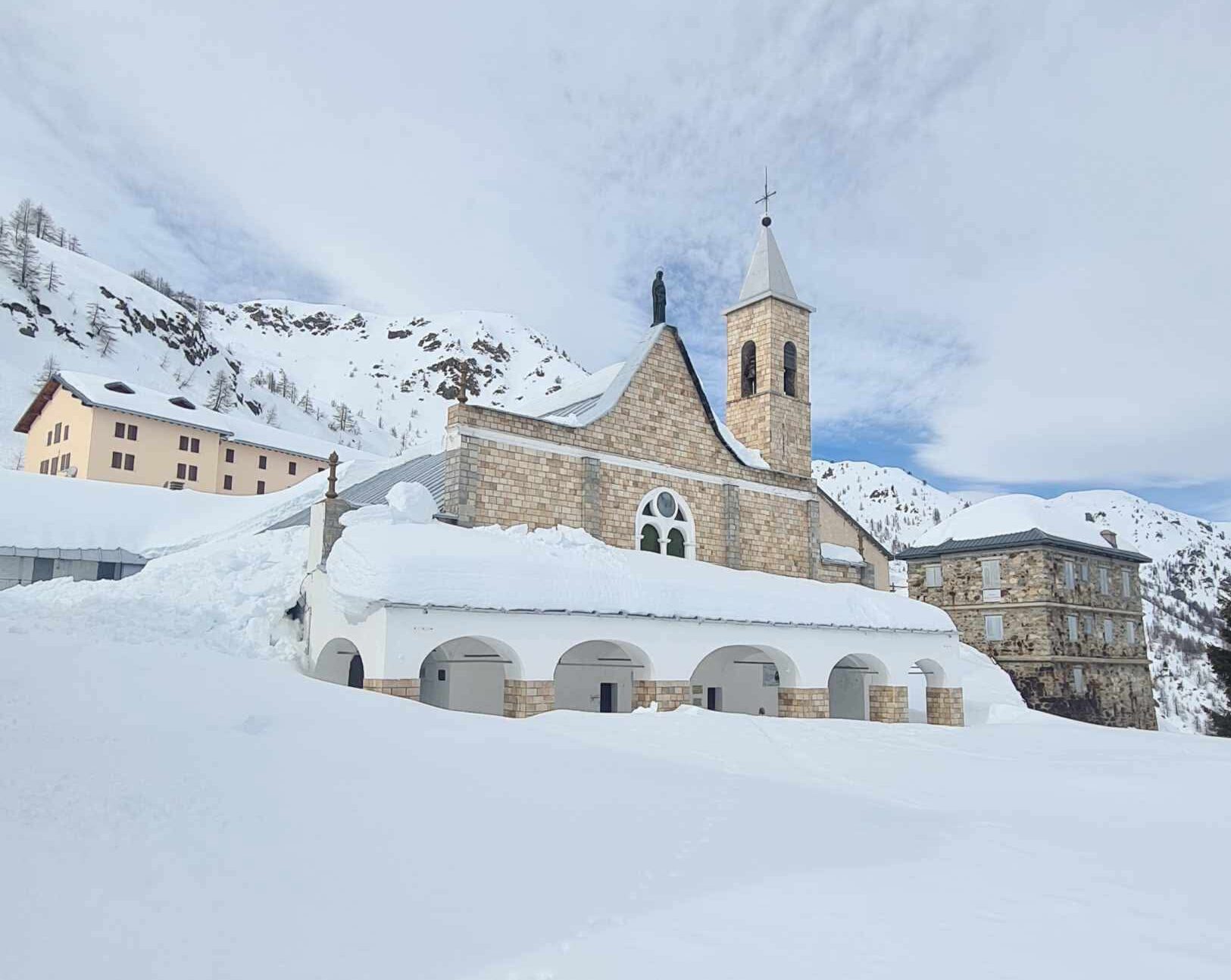 Lo spettacolo del Santuario di Sant’Anna di Vinadio sotto la neve