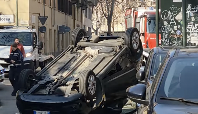 Torino, auto si ribalta dopo lo scontro tra corso Valdocco e via Giulio: due feriti non gravi