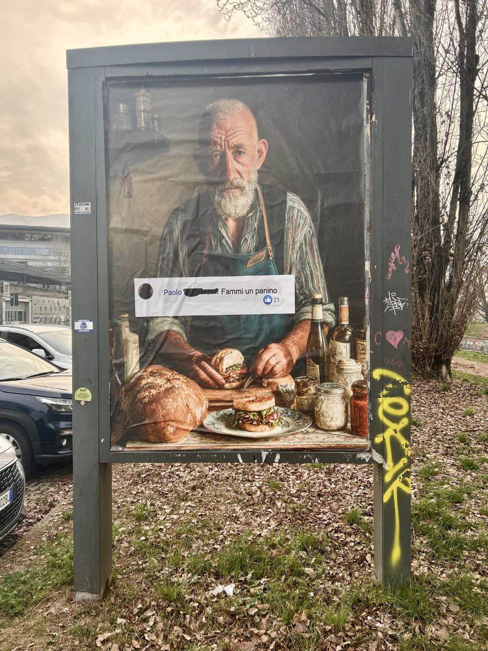 Le immagini sono state affisse nello spazio pubblico a Torino, in Lungo Dora Savona, portando nel contesto urbano una riflessione su ciò che spesso rimane confinato nello spazio digitale.