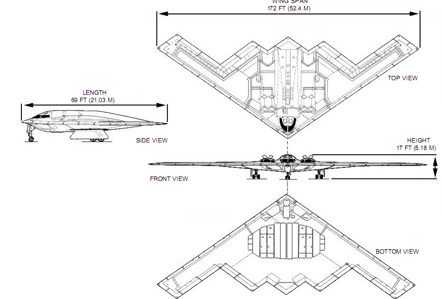 Il Northrop Grumman B-2 Spirit è un bombardiere strategico subsonico di produzione USA in grado di trasportare ordigni sia convenzionali che termonucleari. Si tratta di un velivolo relativamente vecchio dato che il primo volo avvenne il 17 luglio 1989 dalla base aerea di Edwards in California. Se ne sarebbero dovuti costruire 132 esemplari, ma alla fine se ne realizzarono compiutamente 21 esemplari. Le ragioni per cui si ridusse il numero di modelli realizzati fu la fine della Guerra Fredda fra i blocchi occidentali e orientali e i costi smisurati degli aerei. Il costo medio unitario del B-2 è stato valutato in 737 milioni di dollari nel 1997, corrispondenti a circa 1,27 miliardi di dollari del 2021.