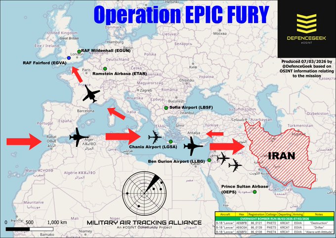 Se noi prendiamo per esempio tre account X, quello di Military Air Tracking Alliance , quello di Armchair Admiral, e quello di DefenceGeek troviamo il racconto dettagliato di molte operazioni che stanno accadendo dopo l’inizio dell’attacco lanciato da Israele e USA all’Iran.
