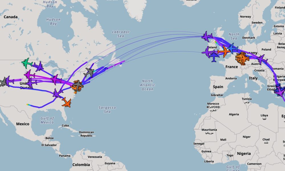 Da quando gli USA hanno avuto disponibilità delle basi in UK e Germania è iniziato un gigantesco andirivieni di bombardieri, caccia e aereoplani logistici e di supporto che fanno si muovono sopra l’Atlantico.
