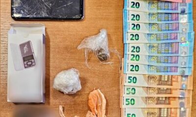 Recuperati due involucri di plastica trasparente contenenti rispettivamente cocaina e hashish