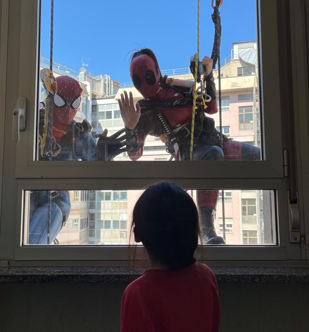 Spiderman, Wonder Woman e molti altri sono apparsi dietro le finestre dell’ospedale torinese, regalando sorrisi inaspettati ai piccoli pazienti