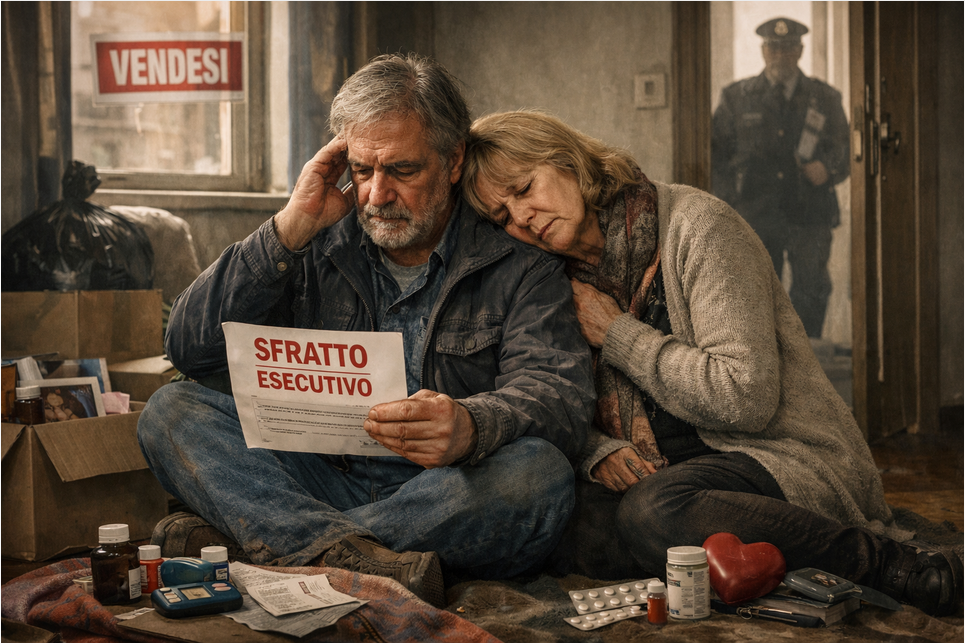 Il 7 aprile 2026 per loro è arrivato un atto di precetto: devono lasciare l’abitazione in cui vivono. Da quel momento, raccontano, la loro esistenza è sospesa, “sotto una spada di Damocle”, in attesa dell’arrivo dell’ufficiale giudiziario. “Non è più vita”, spiegano, con la consapevolezza concreta di poter perdere tutto nel giro di pochi giorni.