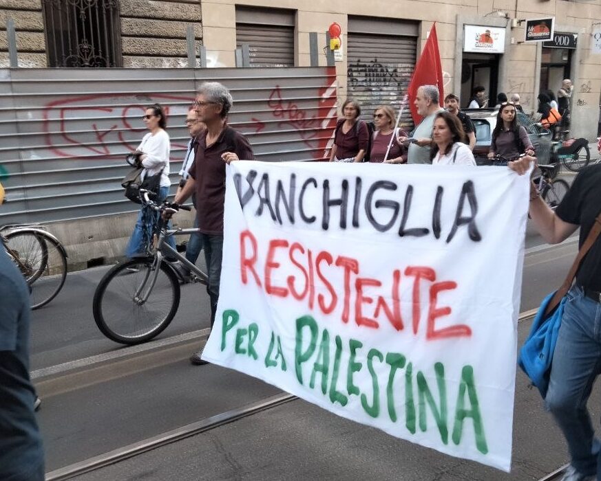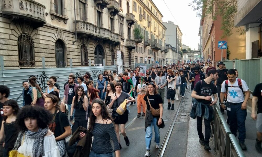 L’azione di protesta è poi culminata con il rogo di alcuni fogli di carta sui quali erano state stampate le bandiere di Israele e degli Stati Uniti, dati alle fiamme prima che il corteo riprendesse il suo percorso lungo le vie del centro.