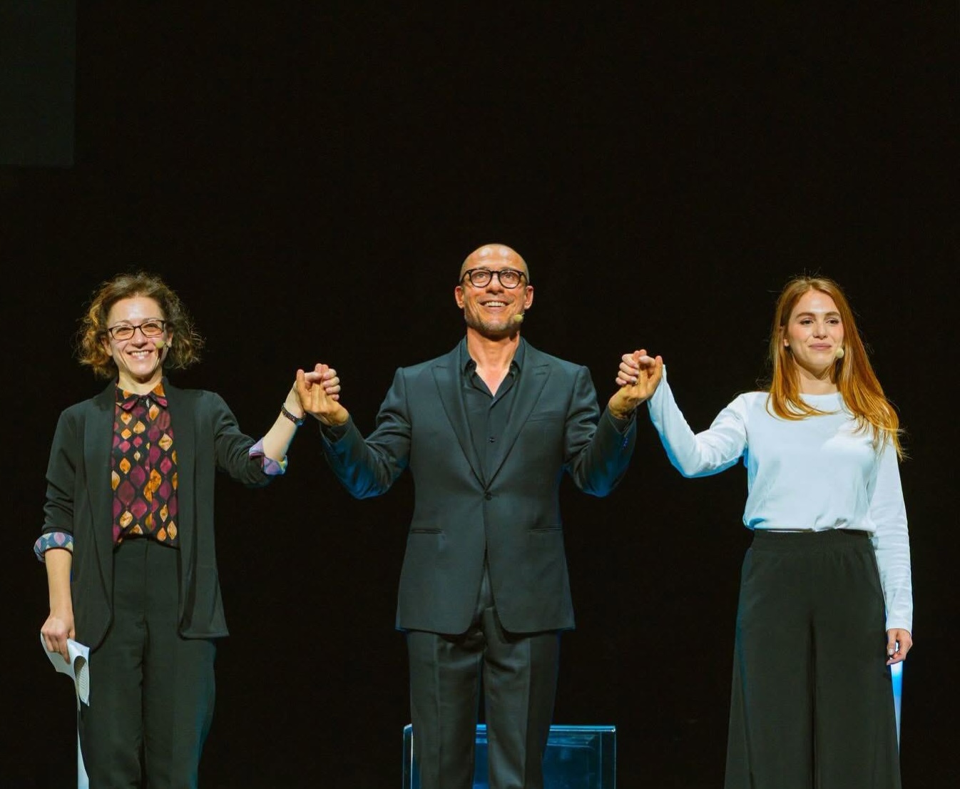 Stefano Accorsi, Ludovica Martino e Tatiana Tommasi sul palco della Biennale Tecnologia 2026