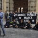 Presidio di Extinction Rebellion davanti a Palazzo Lascaris a Torino: deposta una bara per la «strage» da inquinamento – FOTO