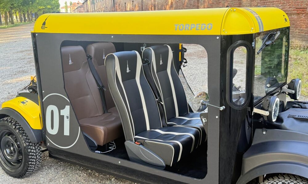 TORINO – Un nuovo tassello si aggiunge al percorso firmato Mole Urbana. Si chiama Torpedo e Con una lunghezza di 3,30 metri e una configurazione capace di ospitare fino a quattro persone, introduce una visione rinnovata del quadriciclo elettrico. Più basso rispetto alle versioni precedenti, è un veicolo compatto ma visivamente robusto, quasi con richiami fuoristradistici, sottolineati da proporzioni solide e ruote di forte impatto.