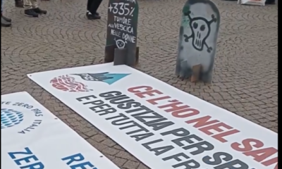 Davanti al tribunale, il presidio del Comitato Stop Solvay: «Chiediamo da anni una bonifica del sito, che non può avvenire»
