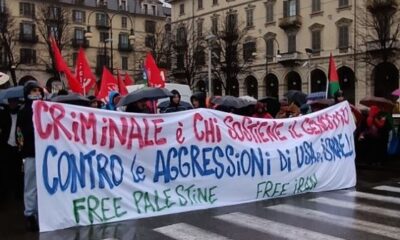 È in corso a Torino la manifestazione promossa dal coordinamento Torino per Gaza, organizzata in contemporanea con Roma