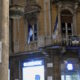 Uno striscione con scritto "Onorano guerre, distruggono terre" è stato esposto sul tetto di palazzo Madama